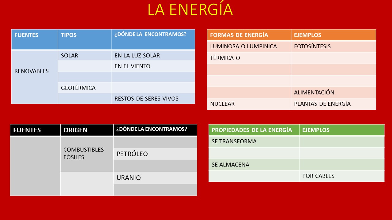 Ahora mira el siguiente video, después, copia en tu libreta y completa las cuatro tablas de abajo.